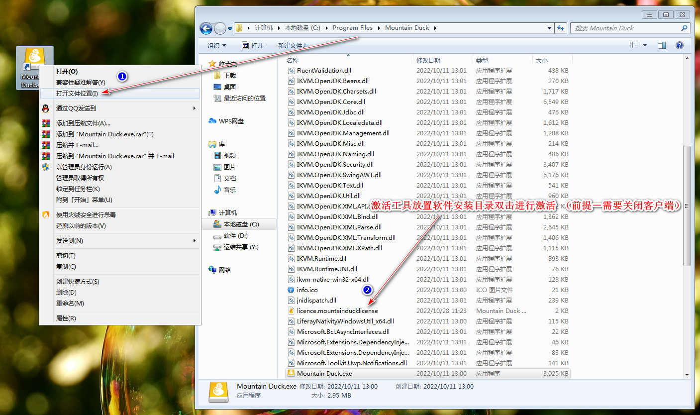 鼠标右键打开文件安装目录并将激活工具放置软件安装目录双击进行激活 (前提-需要关闭客户端)
