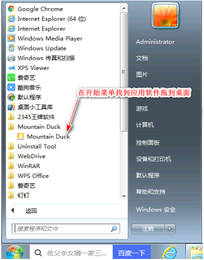 从开始菜单将客户端快捷方式拖拽到桌面。
